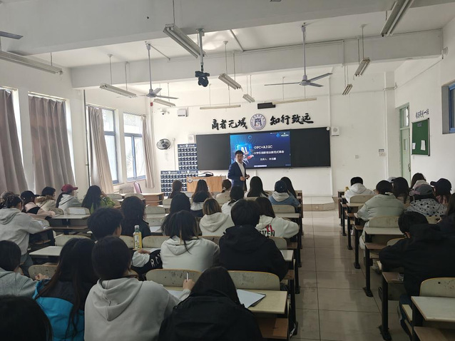 3月26日,学院在工商管理学院楼210教室举办“海斯曼”讲坛,特邀青岛众创人工智能应用研究院院长孙玉鹏,作“OPC+AIGC”大学生创新创业新范式革命主题分享,学院师生代表参会。