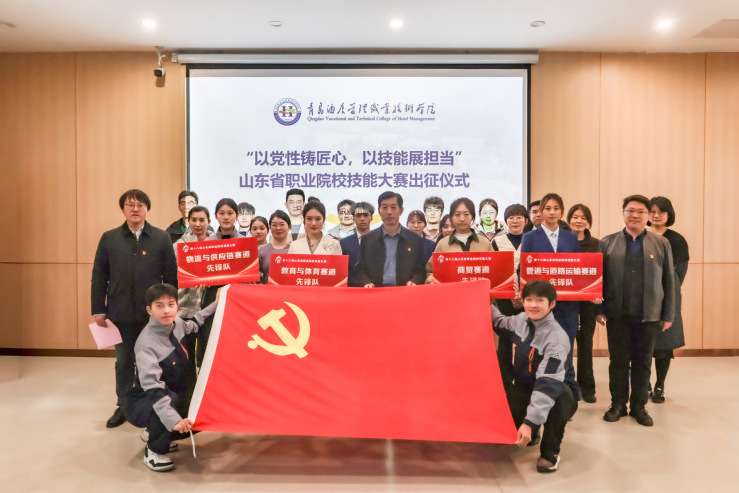 为凝聚参赛力量,鼓舞竞赛士气,充分发挥党建引领育人作用,12月12日下午,工商管理学院在实训中心隆重举行“以党性铸匠心,以技能展担当”山东省职业院校技能大赛出征仪式。学校党委副书记、校长韩西清,工商管理学院党总支班子成员、教师党支部班子成员及全体参赛队师生齐聚一堂,共同为即将踏上省赛征程的 4 支队伍壮行。